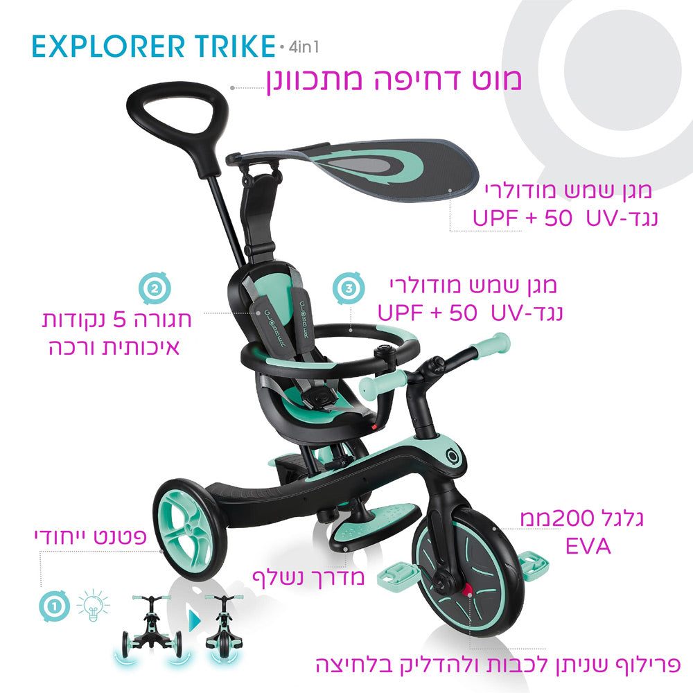 אופני איזון מתקפלים משולבים עם תלת אופן ועגלה לילדים קטנים גלובר Globber EXPLORER FOLDABLE 4in1