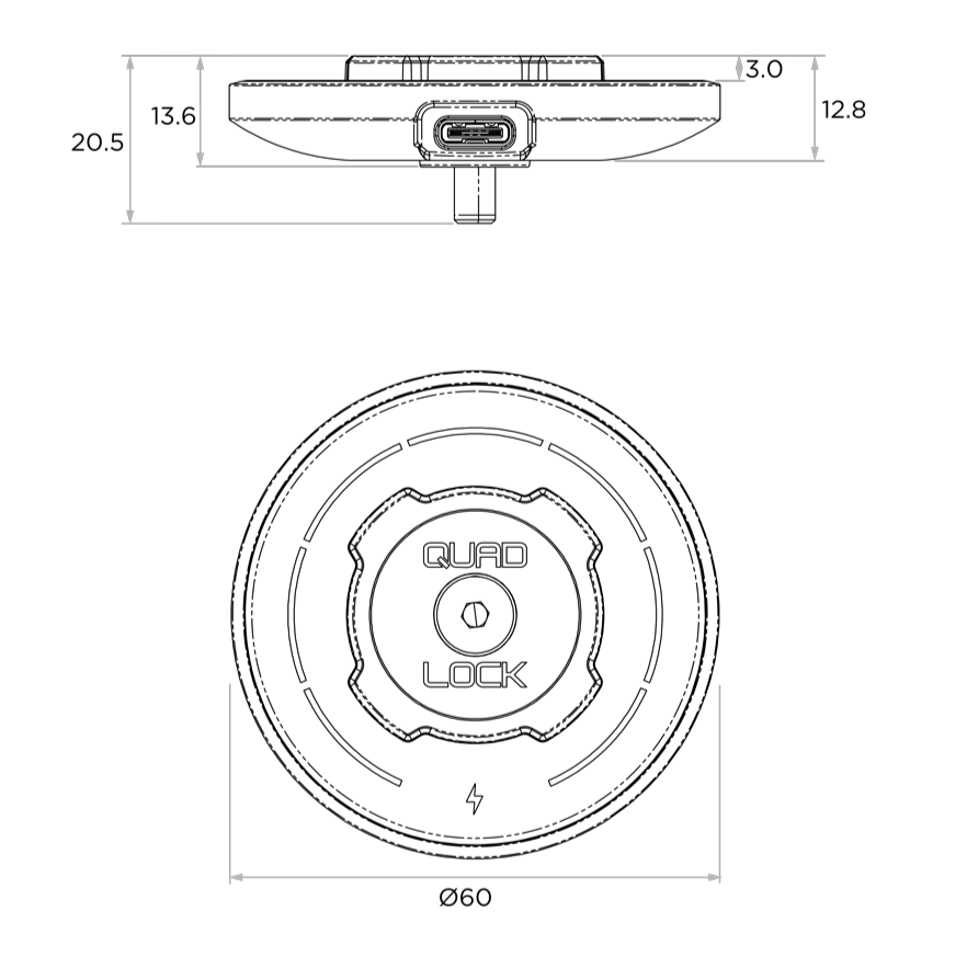 - מוצר זה הינו ההתקן לטעינה אלחוטית - יש לרכוש מעמד וכיסוי לטלפון של QUAD LOCK על מנת להשתמש במוצר