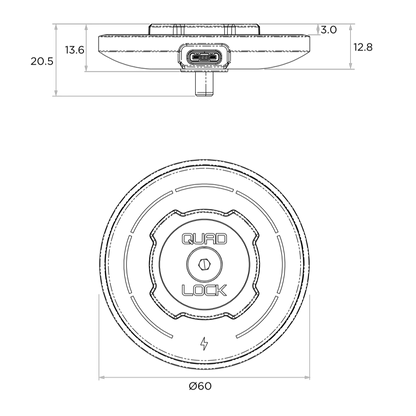 מטען אלחוטי לטלפון למתאמי שולחן או רכב Quad Lock MAG Wireless Charging Head